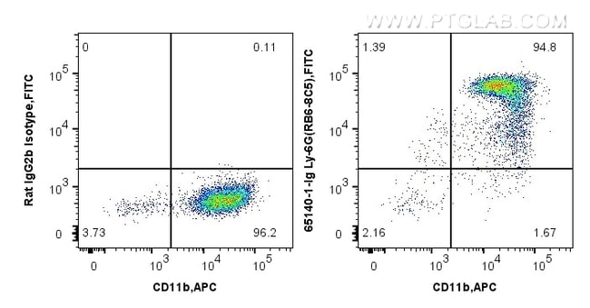 The Ly-6G/Ly-6C (Gr-1) antibody from Proteintech is a rat monoclonal antibody generated with raised against granulocytes of mouse origin of mouse Ly-6G/Ly-6C (Gr-1). This antibody recognizes mouse antigen. The Ly-6G/Ly-6C (Gr-1) antibody has been validated for the following applications: FC analysis.Especificaciones